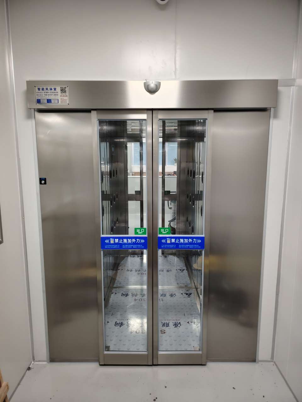 風機是風淋門的動力源,它為空氣循環提供動力。一般采用離心式風機或者軸流式風機,風機的功率根據風淋門的大小和風速要求而定,通常在0.75-1.5kW之間。電氣控制系統主要用于控制風淋門的運行,包括風機的啟停、風淋時間的設定(一般風淋時間可以在10-99秒之間調節)、門的開關等功能。同時,系統還具備故障報警功能,當過濾器堵塞、風機故障等情況發生時,能夠及時發出警報信號。
