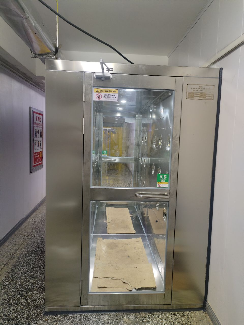 風淋室空間布局,狹長通道式,僅容人員站立吹淋(一般無滯留空間)。